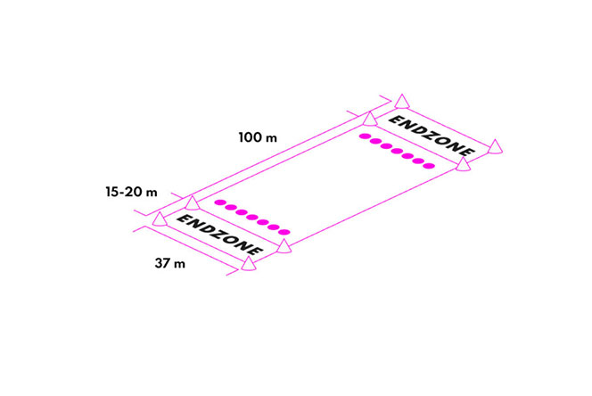 Ultimate ist ein intensives Teamsportspiel, das auf einem 100 m × 37 m großen Feld gespielt wird mit gemischten Teams aus je 7 Frauen und 7 Männern. Jeweils 7 stehen gleichzeitig auf dem Feld.